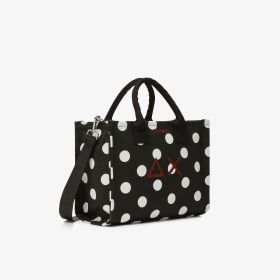 Shopping bag Cali in tela di cotone stampato nero/bianco panna