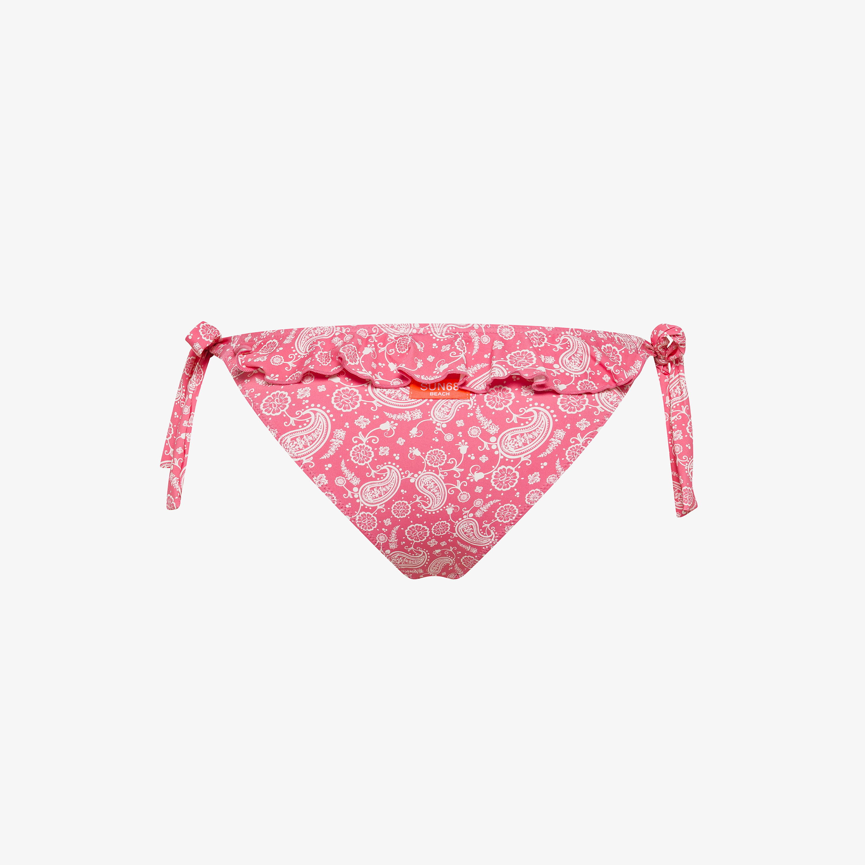 SUN68 aggiorna il beachwear con grafiche esclusive, colori vivaci e dettagli iconici che dettano il nuovo ritmo della stagione. Questo slip bikini ha un design femminile che valorizza la silhouette e segue con naturalezza i movimenti. Abbinalo al top coordinato e agli accessori della collezione per un look summer-ready impeccabile e distintivo.