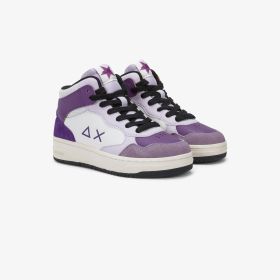 SUN68 reinterpreta l'ispirazione basket anni '90 per portare nuova energia nel guardaroba delle bambine. La sneaker Basket Love Lady Mid ha un design accogliente ma robusto con suola in gomma effetto vintage.
