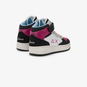 SUN68 reinterpreta l'ispirazione basket anni '90 per portare nuova energia nel guardaroba delle bambine. La sneaker Basket Love Lady Mid ha un design accogliente ma robusto con suola in gomma effetto vintage.