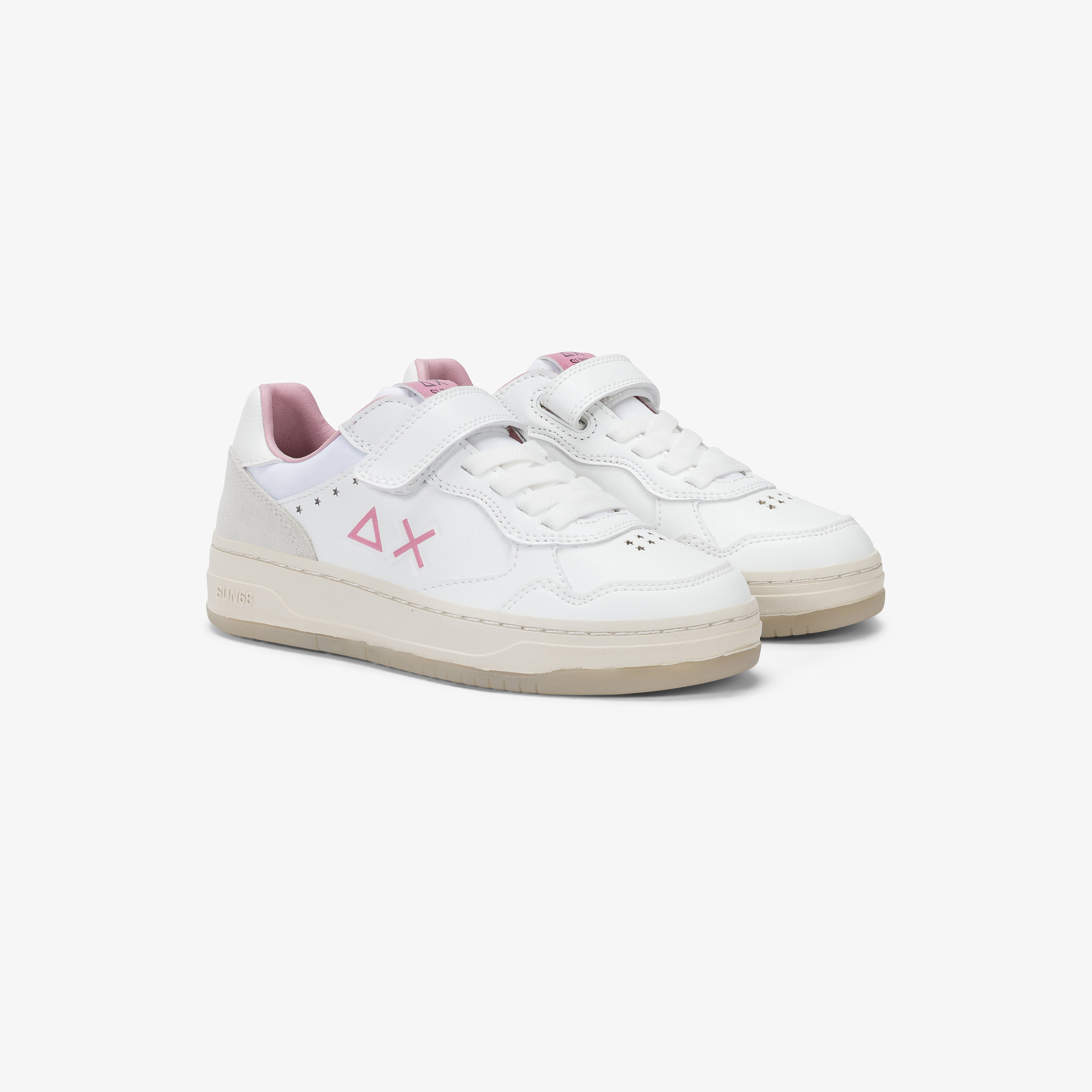 SUN68 reinterpreta l'ispirazione basket anni '90 per portare nuova energia nel guardaroba delle bambine. La sneaker Basket Love Lady ha un design accogliente ma robusto con suola in gomma effetto vintage, perfetta da abbinare alla felpa o alla t-shirt retrò della collezione per un total look dal fascino vissuto.