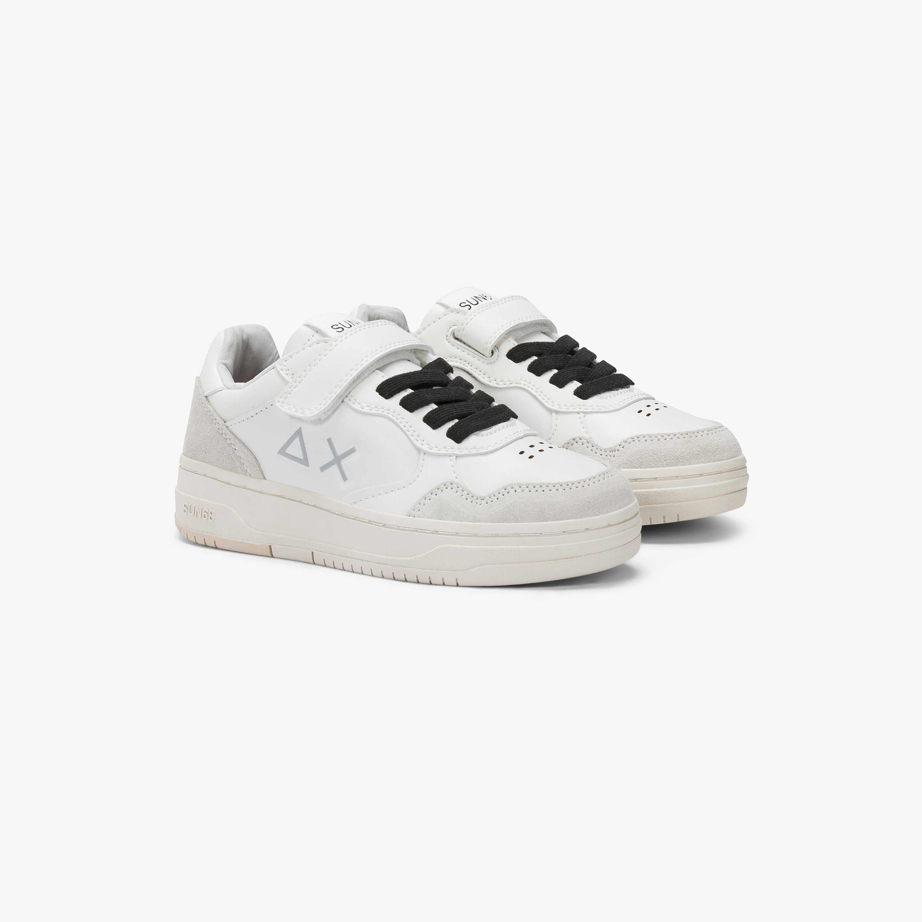 Big Basket è la sneaker SUN68 che interpreta con stile il dinamismo dei bambini. Realizzata in pelle e suede dai colori attuali, si caratterizza per la suola alta a cassetta che sostiene con sicurezza i movimenti.