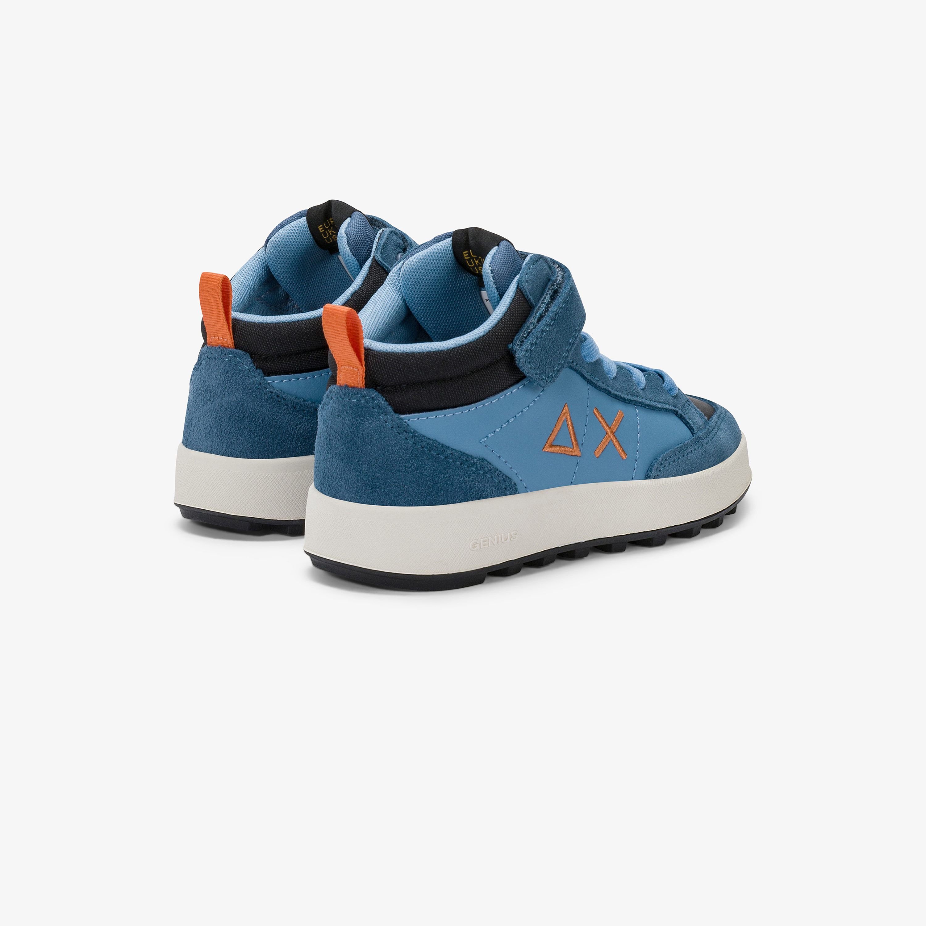 Le linee pulite curate nei minimi dettagli e la forma compatta personalizzata con elementi iconici rendono Genius Mid un simbolo dello stile SUN68. Chiuso con lacci e cinturino a strappo, il modello è perfetto per i giorni di scuola e i momenti di gioco all'aria aperta.