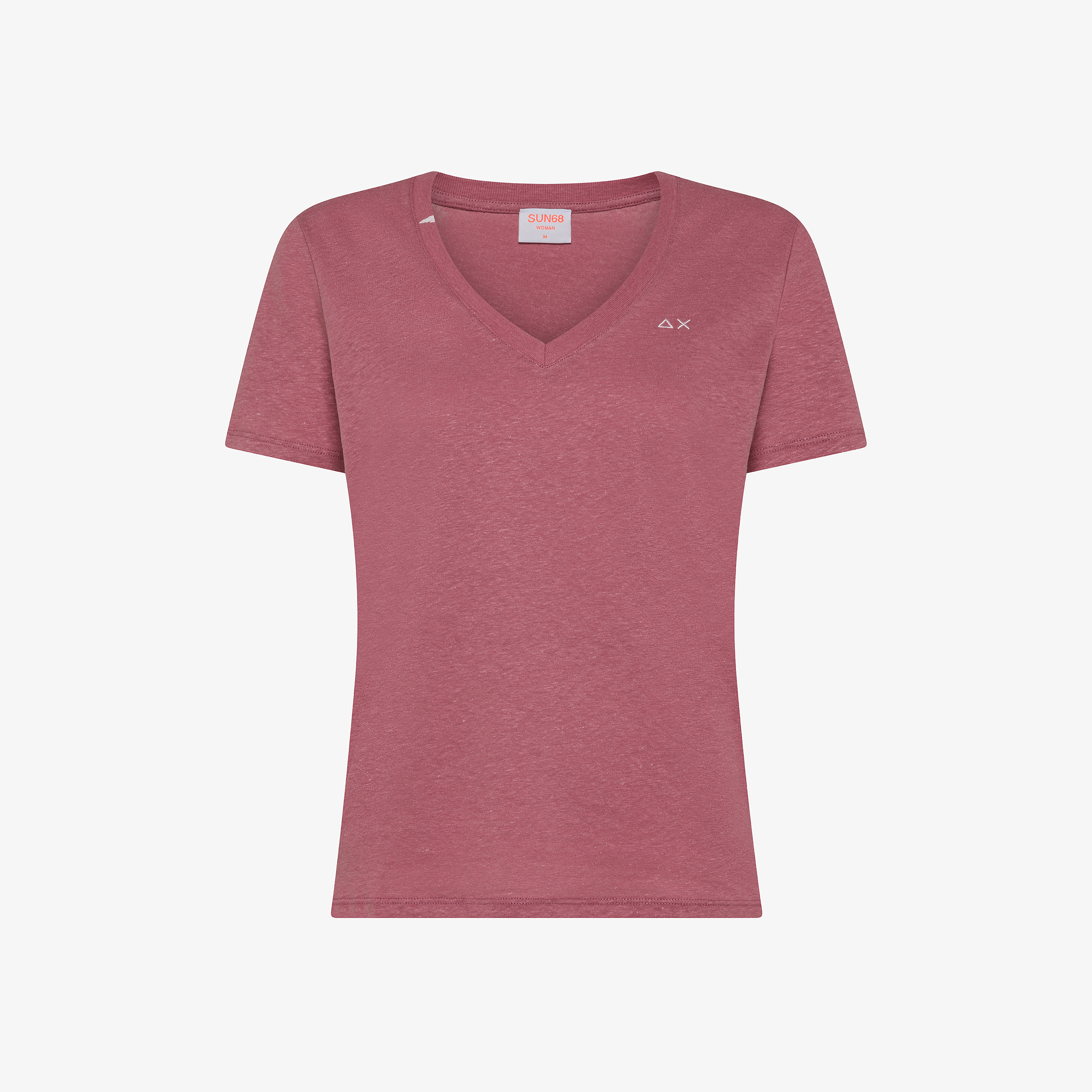 T-shirt in lino e cotone rosa scuro